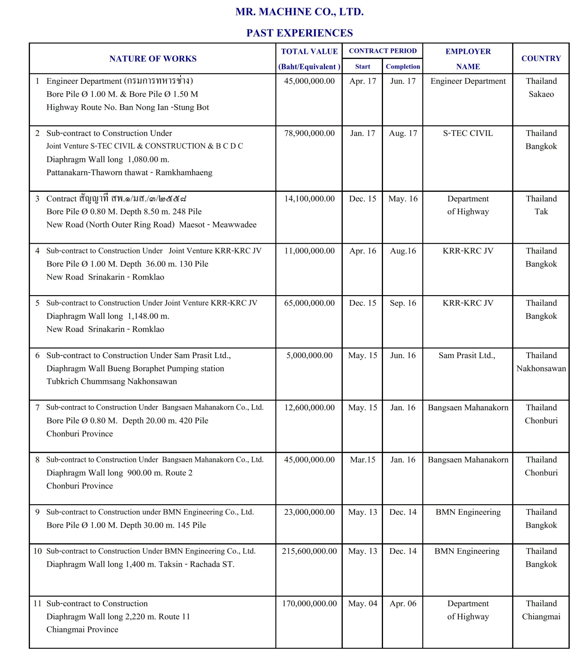 บริษัท มิสเตอร์ แมชชีน จำกัด - ประกอบกิจการรับเหมา ก่อสร้างงาน Diaphragm Wall งานเสาเข็มเจาะ Bored pile และงานก่อสร้างโยธาต่าง ๆ